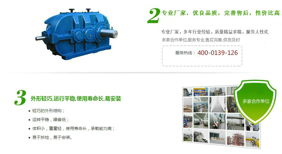 我廠主打產品為R、S、K、F系列斜齒輪減速機,ZSY、ZLYJ、ZD重型齒輪減速機,B、X系列擺線針輪減速機,WP、NMRV蝸輪蝸桿減速機,P系列行星減速機,TDY電滾筒及各種非標減速機.廣泛應用于制金.包裝,紡織,塑料機械,化工.電工機械等眾多行業。